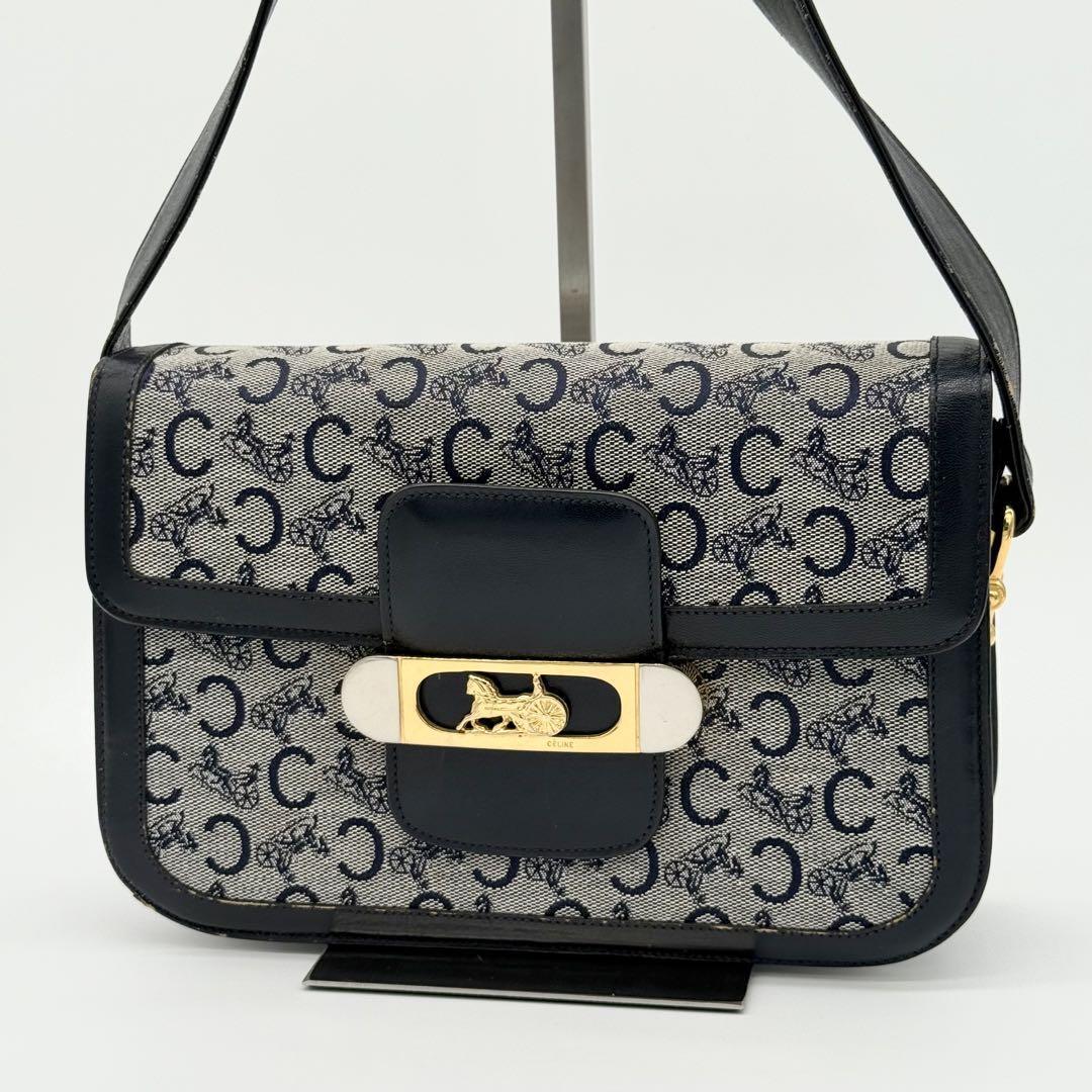 - 【良品】CELINE セリーヌ 馬車金具 Cマカダ厶 セミショルダーバッグ ハンドバッグ レディース キャンバス ヴィンテージ ネイビー BCG790521