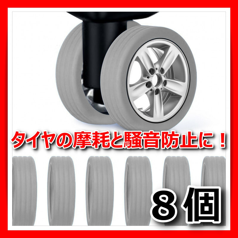 - キャスターカバー スーツケース キャリーケース 静音 タイヤカバー シングル 傷予防 旅行 出張 椅子 ホイール シリコン グレー 灰 8個