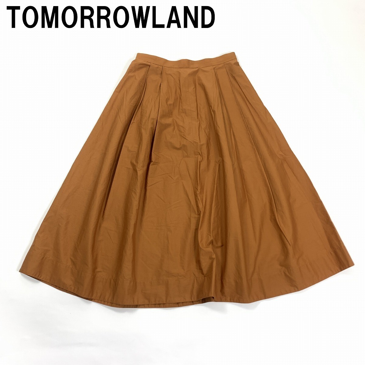 > TOMORROWLAND トゥモローランド ロングスカート フレア 綿 コットン 茶色 ブラウン キャメル 36 YC473