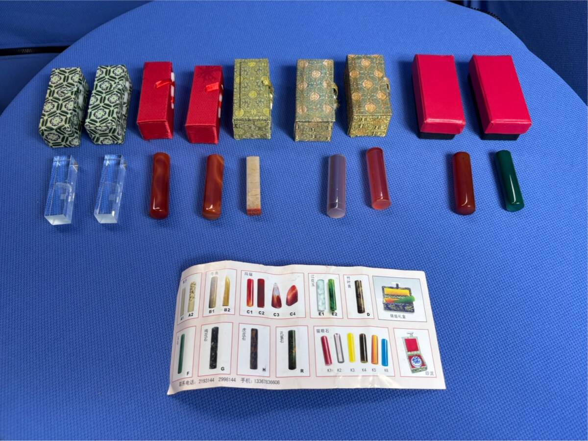 - 94☆天然石/印鑑9本セット 中国/彫刻/手彫り/印石/印材/スタンプ