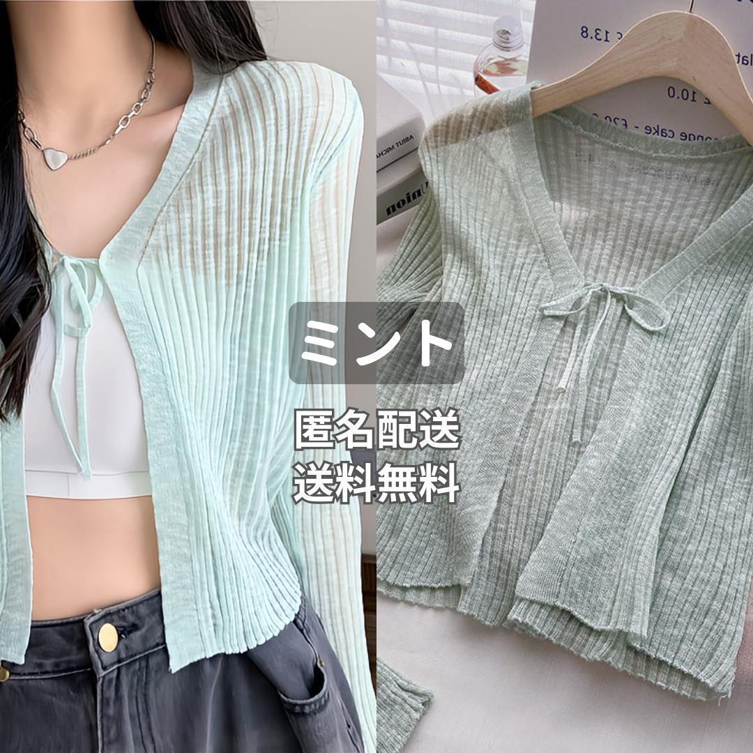 - レディース 韓国ファッション シアーカーディガン ショート丈 透け感 ミント レディース トップス おしゃれ