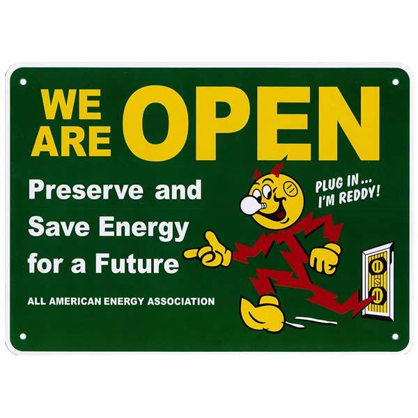 > プラスチックサインボード/Reddy Kilowatt レディキロワット『WE ARE OPEN』(CA-55)プラ看板 アメリカン雑貨 世田谷ベース キャラクター