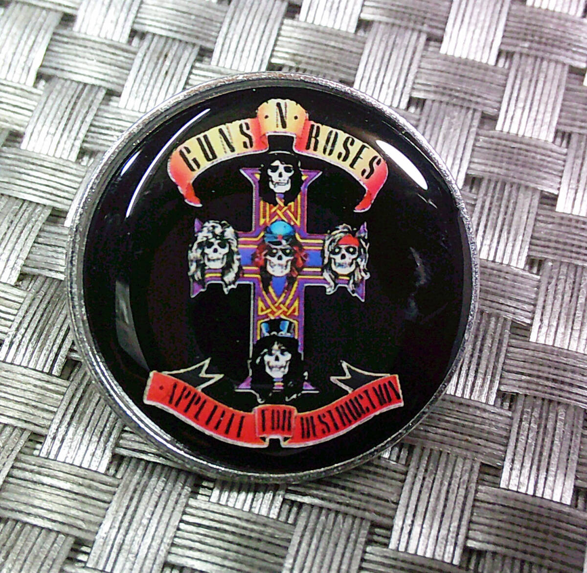 - 《黒円GN5髑髏顔十字架》音魂■ 新品『ガンズ・アンド・ローゼズ』 ■Guns・N・ROSES 激渋 金属ピンバッジ■アメリカ音楽 ミュージック