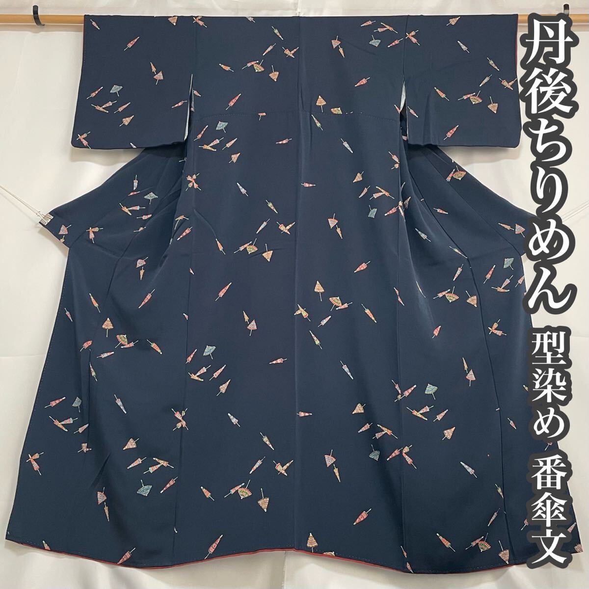 - #H359 丹後ちりめん 縮緬 型染め 番傘 正絹 和装 和服 着物【wellriver】