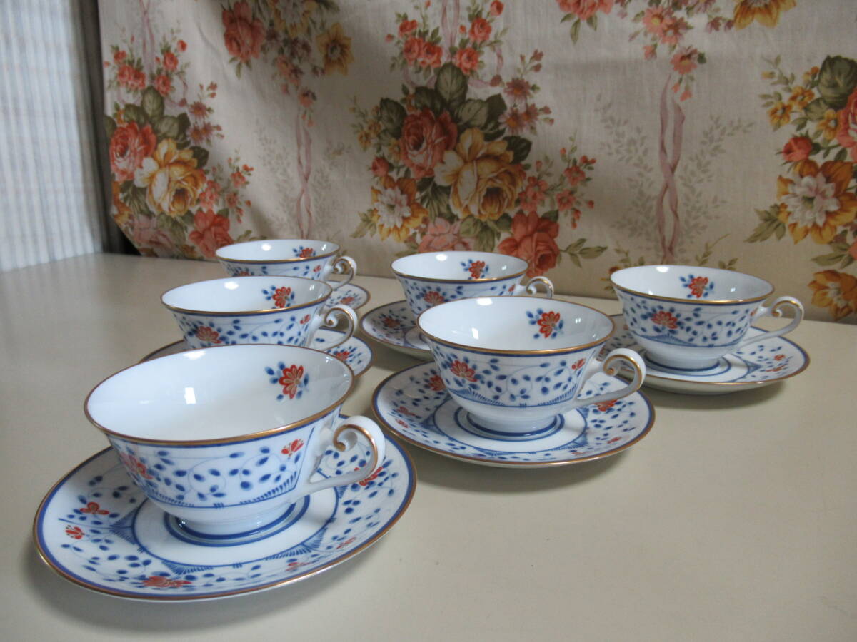 - R7 06★ノリタケ 【スタジオコレクション】カップ&ソーサー 6客 和柄 金彩
