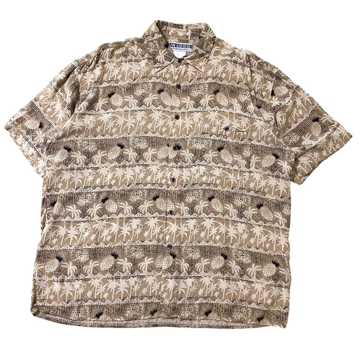 - アメリカ古着 アロハシャツ パイナップル パームツリー ハワイアン Lサイズ US古着 【AL227】