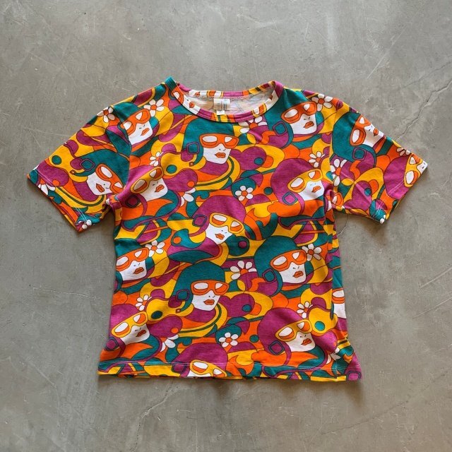 > 【Ladies】西ドイツ製 BLICKLES 総柄 プリントTシャツ オレンジ■ビンテージ オールド レトロ ヨーロッパ古着