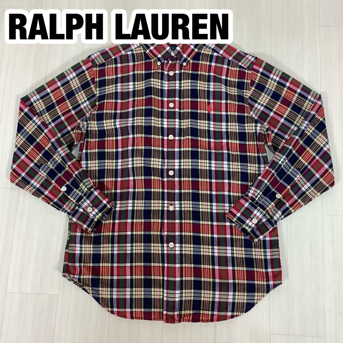 > RALPH LAUREN ラルフローレン 長袖シャツ 150 マドラスチェック ネイビー×レッド ボタンダウン 刺繍ポニー