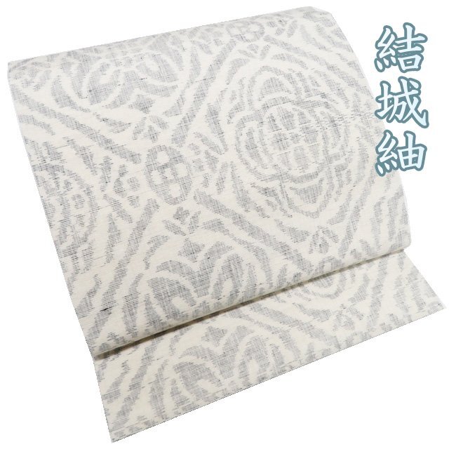 - 特選 開き名古屋帯 なごや帯 中古 リサイクル 正絹 カジュアル 仕立て上がり 結城紬 花紋 華文 菱 生成色 黒色 きもの北條 A1216-15
