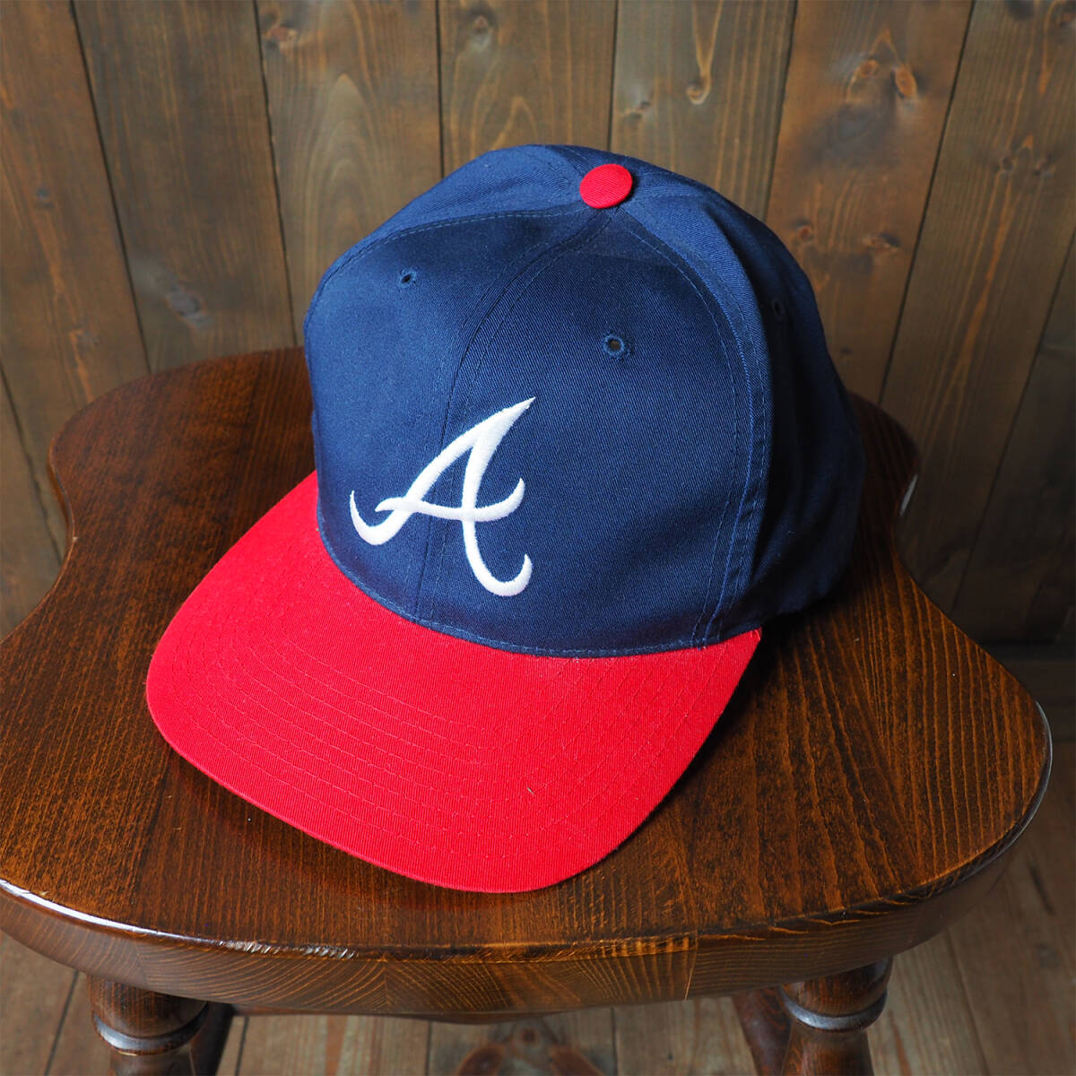 - 90s 00s キャップ MLB Braves ブレーブス ツバ裏グリーン ビンテージ ネイビー