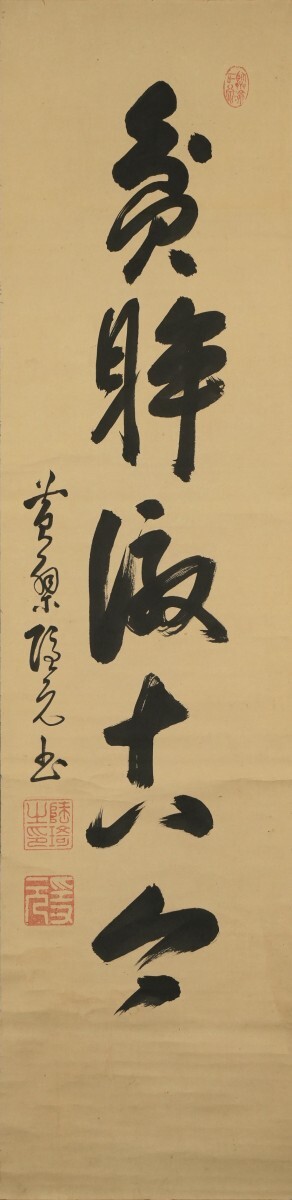 - 【真作 川勝宗久極】掛軸「隠元隆琦 貧眸徹古今 一行」江戸前期 渡来禅僧 宇治黄檗山万福寺開山 黄檗三筆 書