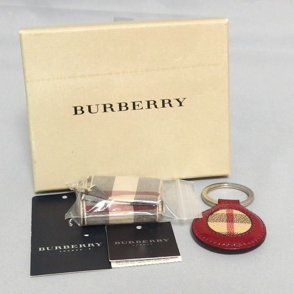 - ★BURBERRY ノバチェック エナメル レザー ラウンド キーホルダー 赤 バーバリー★
