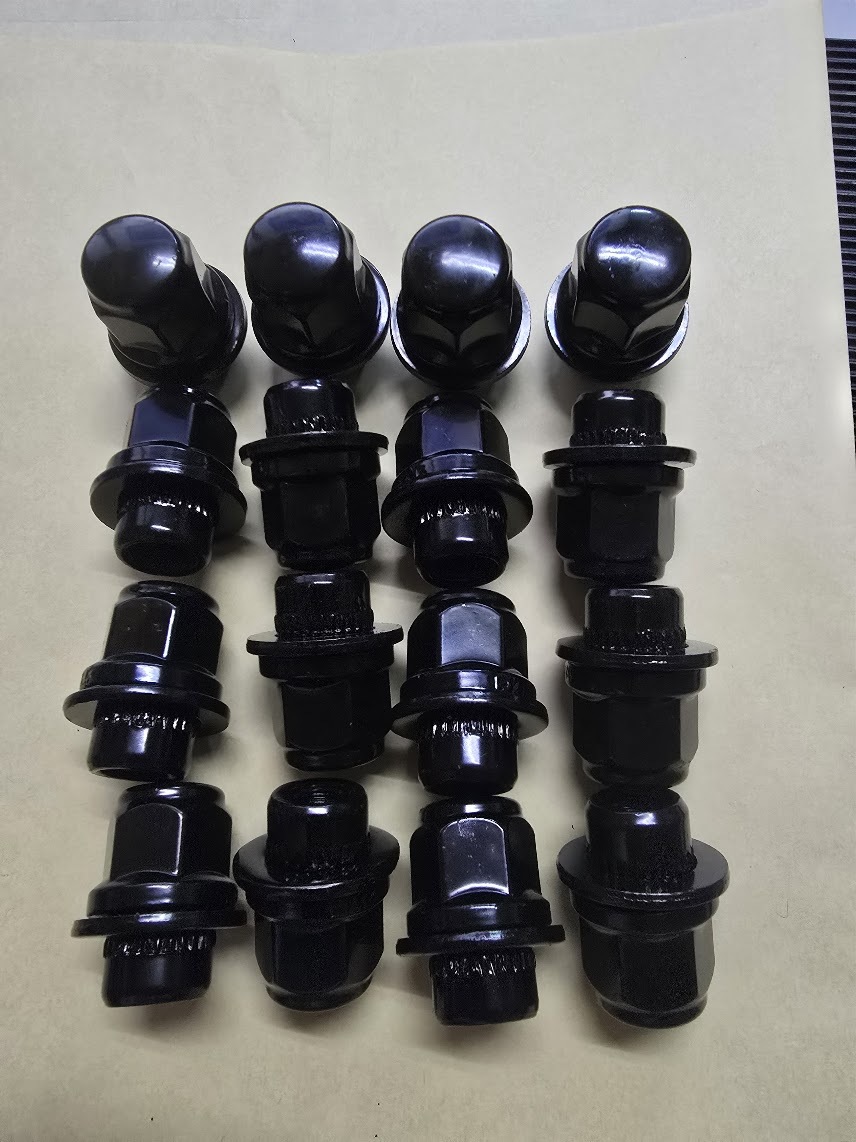 - 送料無料 M12 X P1.5 21HEX トヨタ レクサス 三菱 純正アルミホイール用 平面座 ブラック ナット 16個新品 黒 平座
