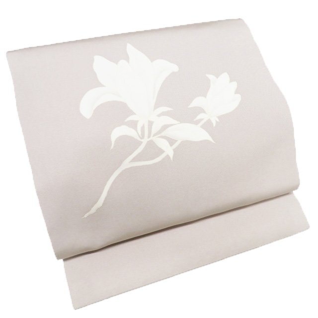 > 名古屋帯 なごや帯 中古 リサイクル 正絹 カジュアル 仕立て上がり 塩瀬 刺繍 花の図 薄い白橡色 きもの北條 A1217-9