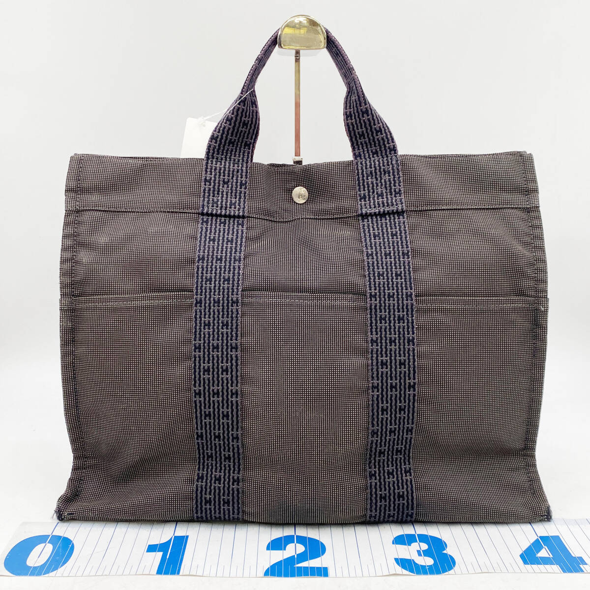 - HERMES エルメス トートMM エールライン トートバッグ キャンバス グレー