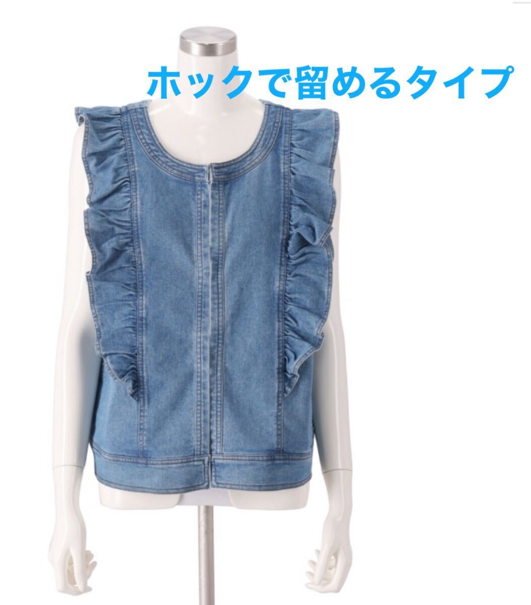 - 送料無料 &LOVE オシャレ鮮度UPな大人デニムふりるジレ 3L 未使用 アンドラブ qvc 匿名配送 ベスト ブルー フリル