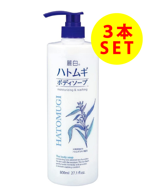 - 送料無料/ 麗白 ハトムギ ボディソープ 本体 800ml 3本セット 熊野油脂