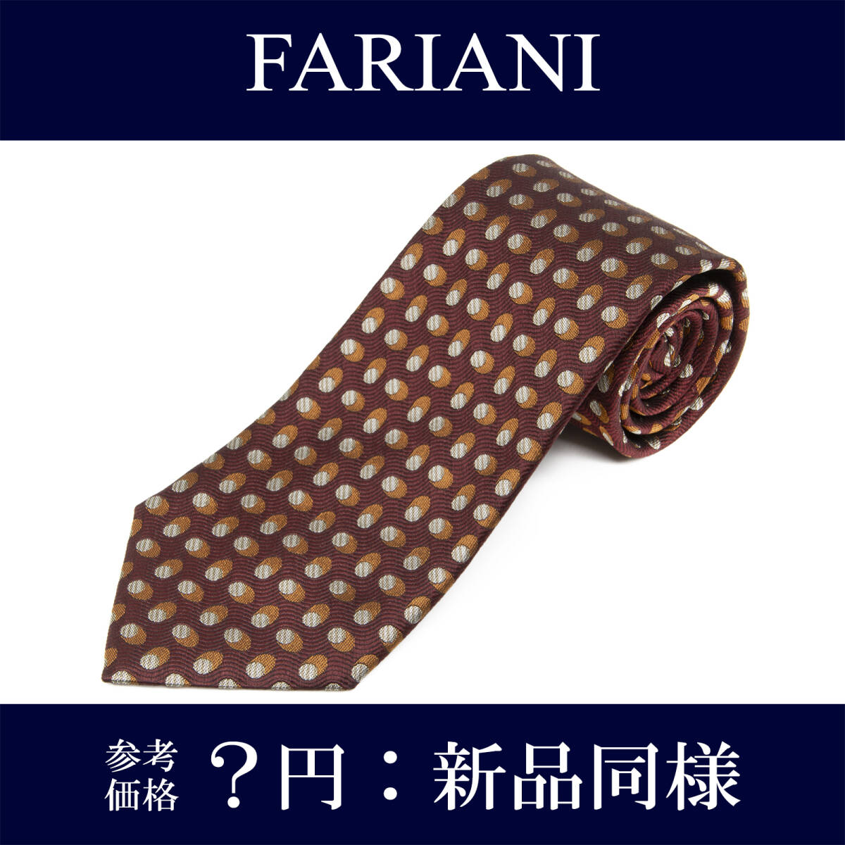 - 送料無料 ファリアーニ ネクタイ ジャガード 新品同様 シルク バーガンディー オレンジ グレー サークル 波 光沢 ブランド イタリア製 P033