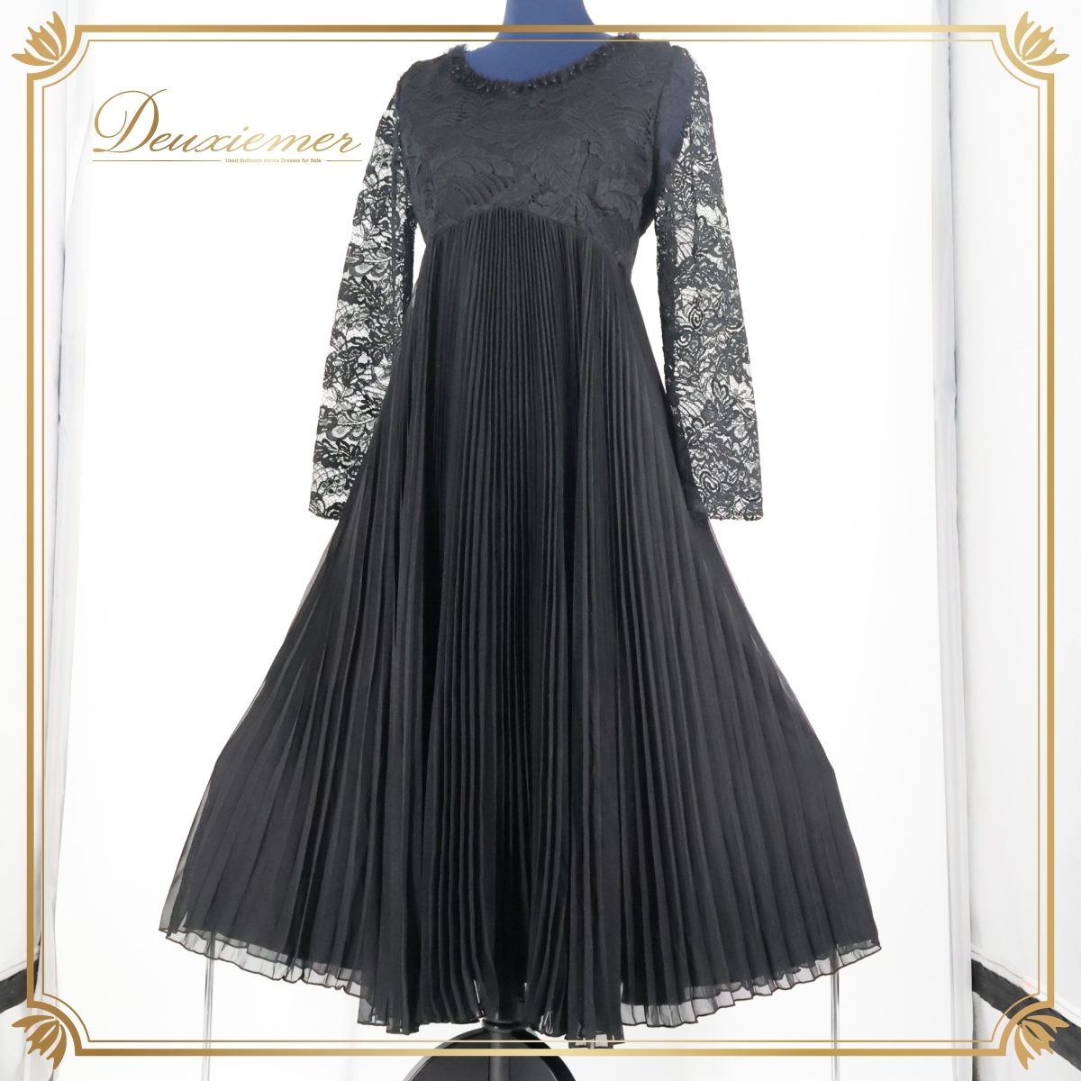 > 『送料無料』【パーティドレス】ブラック ワンピース ドレス 真っ黒 レース生地 花柄 発表会 二次会 イベント フリル 透け感 かわいい