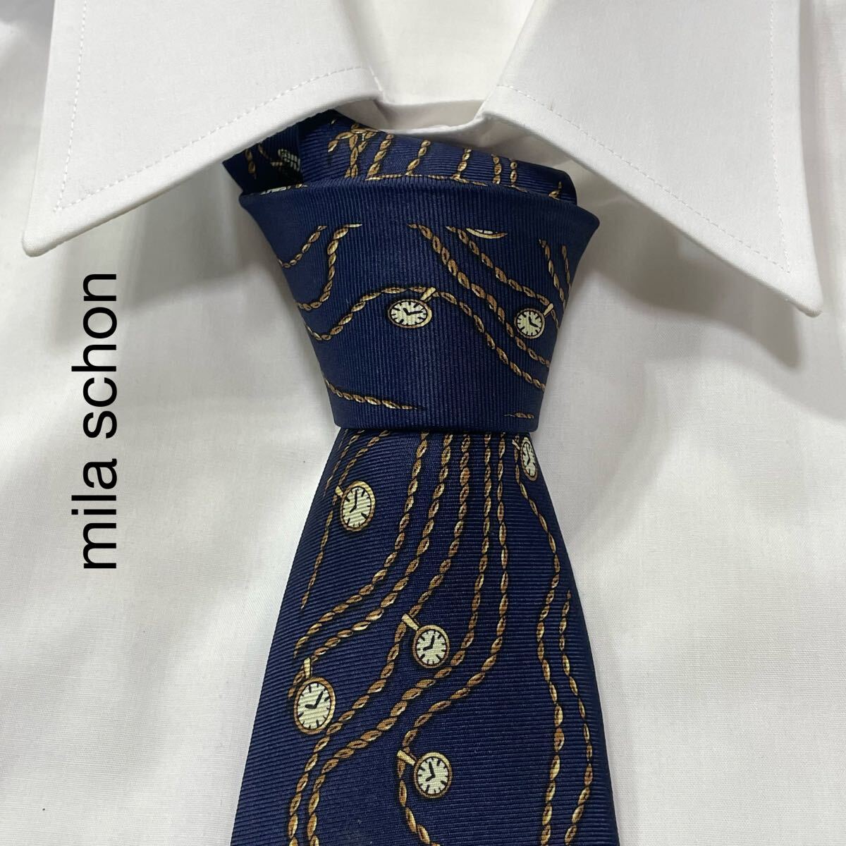- mila schon ミラショーン 懐中時計 チェーン シルク ネクタイ イタリア製 ネイビー TG2520