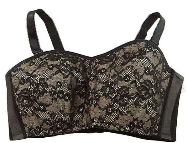 - SI6448-3◇ 新品 ブラジャー ワイヤー無し フルカップタイプ パッド無し 前身頃レース使用 脇部・背中幅広型 C85 ブラック 送料350円