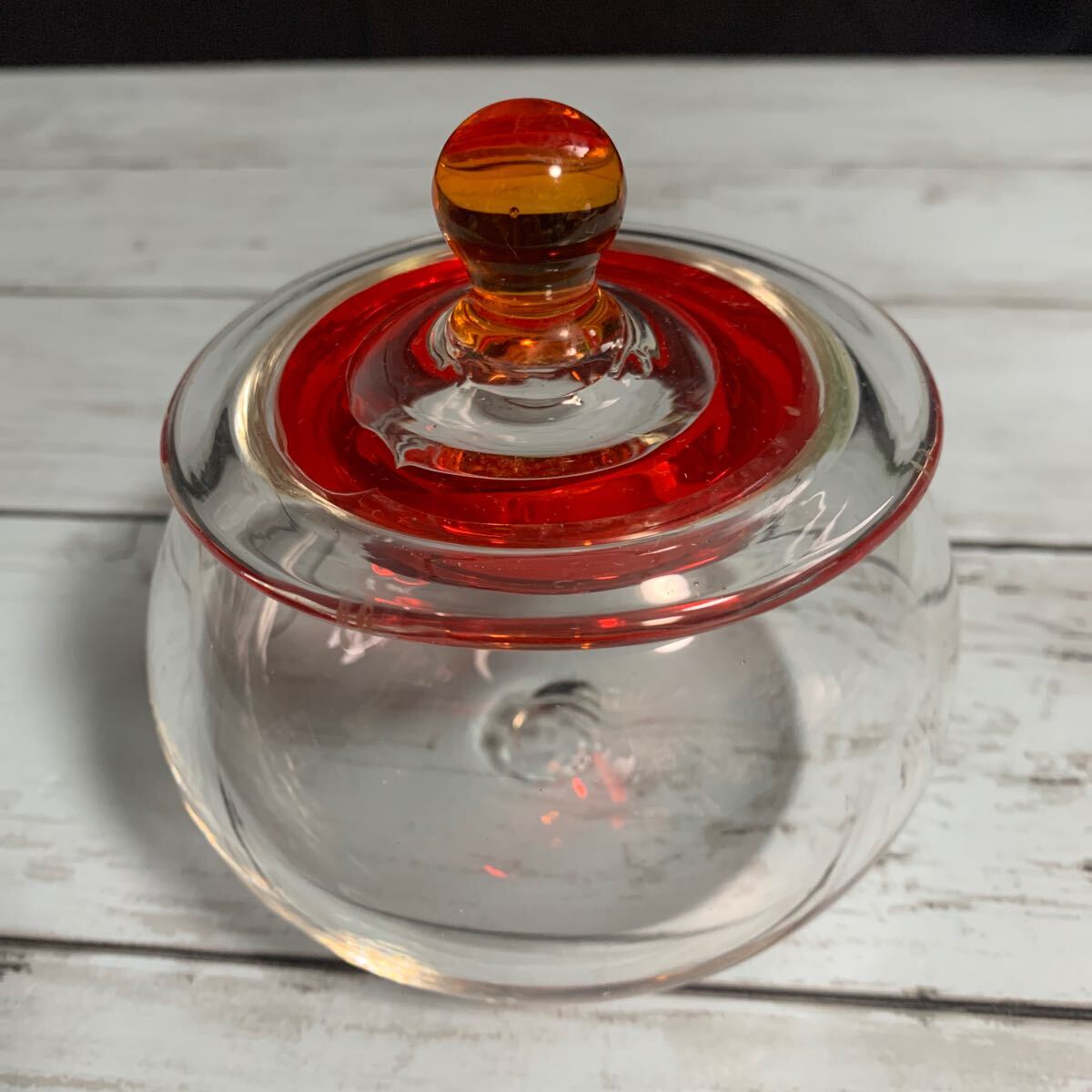 > キャンディポット ガラス容器 蓋付き 小物入れ 昭和レトロ ポップ インテリア ガラス製 雑貨 色ガラス 赤 (A-2421)