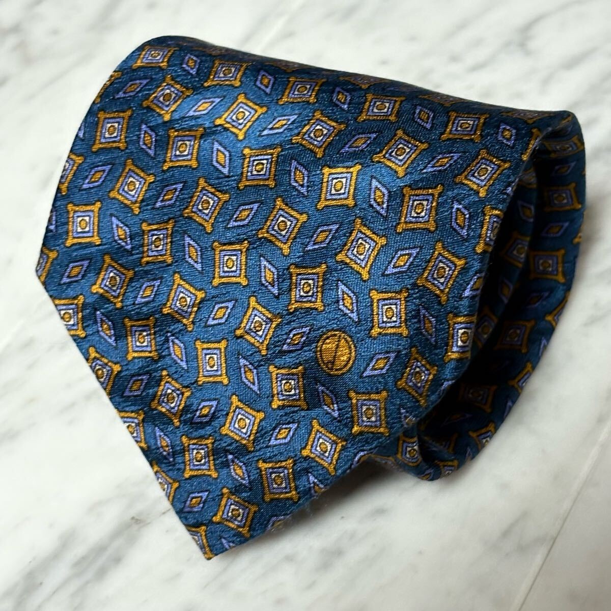 - 【未使用】 999円~ dunhill ネクタイ ネイビー 小紋 総柄 (B4)