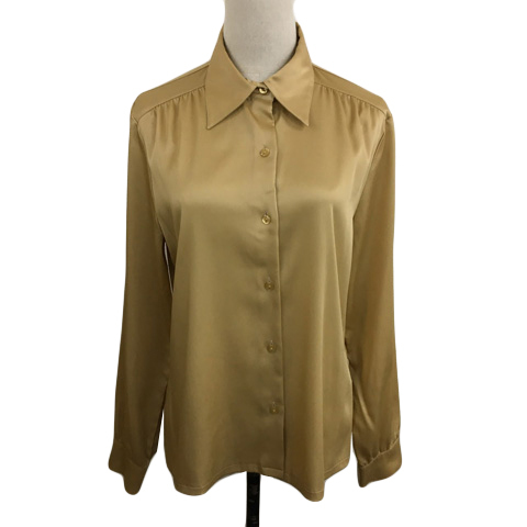 > 22オクトーブル 22 OCTOBRE ブラウス シャツ スタンダード 光沢 サテン 無地 長袖 44 ベージュ レディース