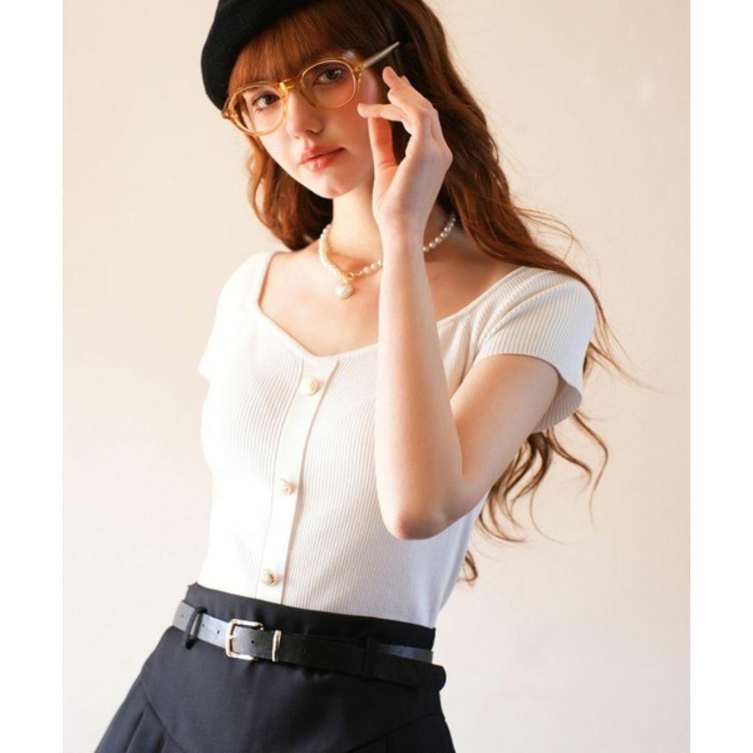 - 【新品】ダイヤモンドネックリブ編みサマーニット ホワイト L
