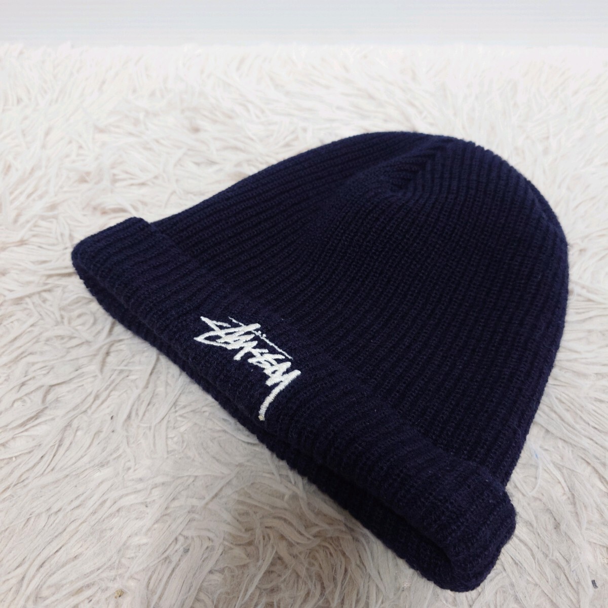- stussy ステューシー USA製 アメリカ製 アクリル ニット帽 OS メンズ ダークネイビー 濃紺