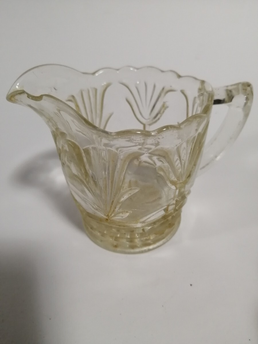 - 型ガラス クリーマー 1960年代 イギリス ガラス ミルク ピッチャー 花柄 コーヒー 紅茶 ミルク 61GL23c1