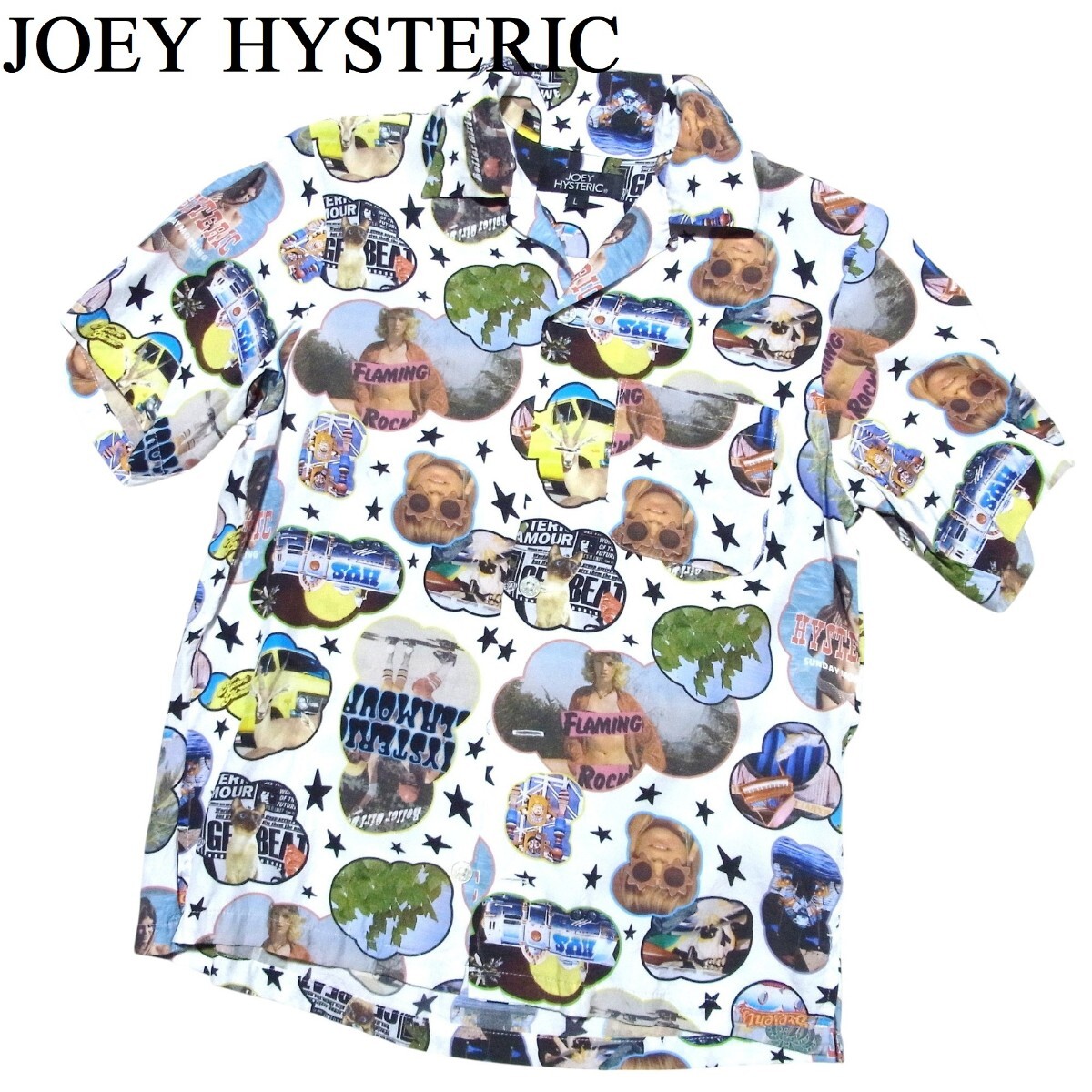 > JOEY HYSTERIC ジョーイヒステリック FLAMING ROCK柄 アロハシャツ レーヨン シャツ L ホワイト