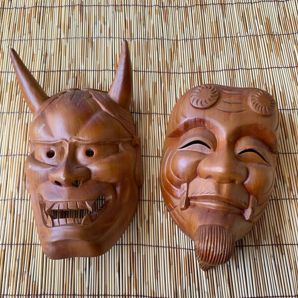- 般若 翁 能面 木彫 壁掛 工芸品 一刀彫 手彫り コレクション