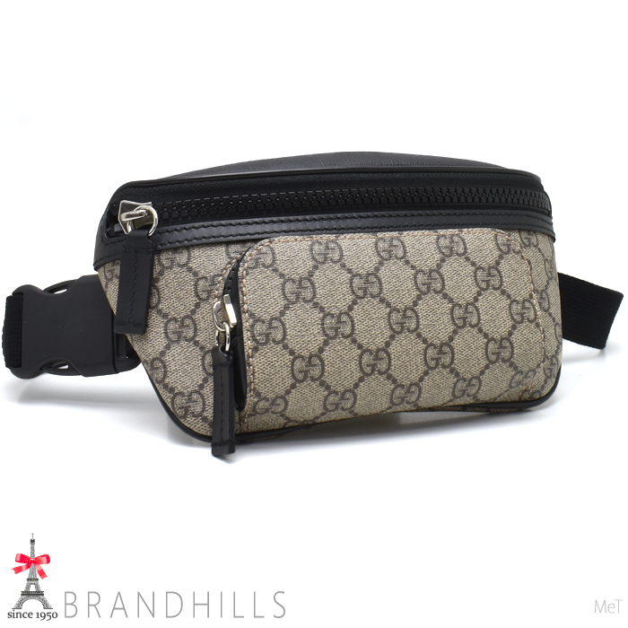 > グッチ ベルトバッグ メンズ レディース GGスプリーム ベージュ エボニー ボディバッグ 450946 GUCCI ほぼ未使用