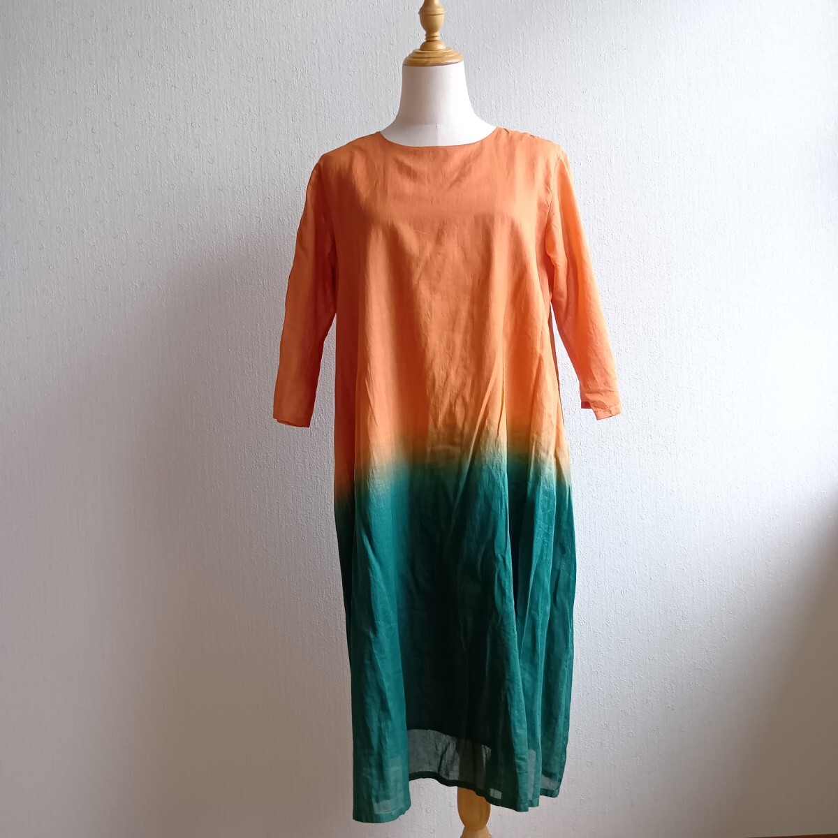 - 東京かんかん TANA BANA タナバナ グラデーションワンピース 七分袖 インド製 オレンジ グリーン