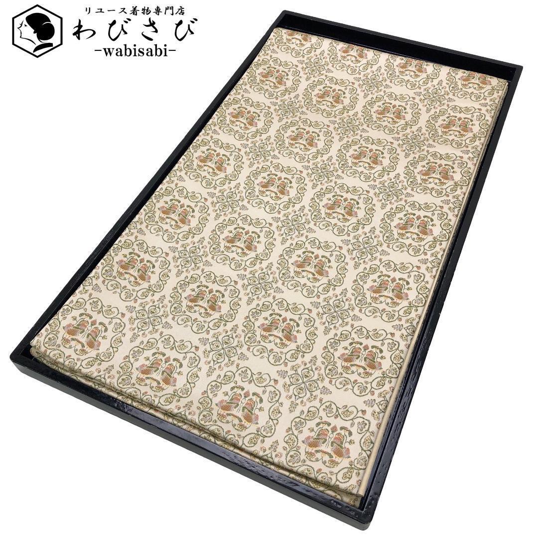 - 袋帯 向かい鳥に花唐草模様 生成色 O-5237 着物 きもの kimono 和服 和装 中古 リサイクル着物 【送料無料】