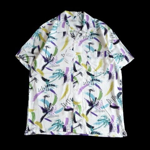 > 新品 アロハシャツ ヤシ柄 roushatte 半袖 シャツ メンズ L 紳士 ランダム ペイント 総柄 開襟 オープンカラー