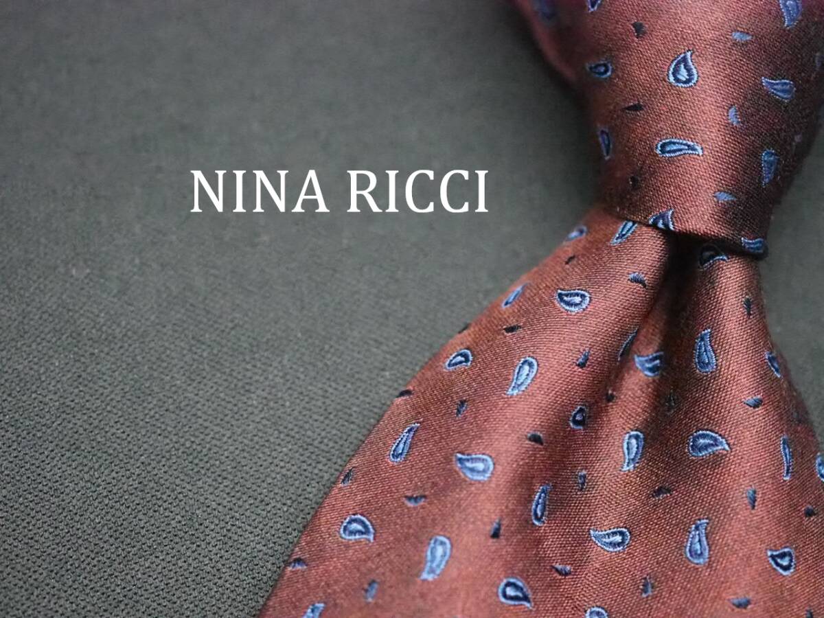 - 美品【NINA RICCI ニナリッチ】 E2630 ブラウン SILK ブランド ネクタイ 古着 良品