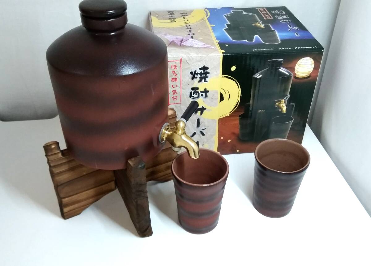 > 【TN-2138】長期保管品/焼酎サーバー/1L/スタンド・グラス2個セット/焼酎入れ/Y・S・N/アンティーク/中古(SH)