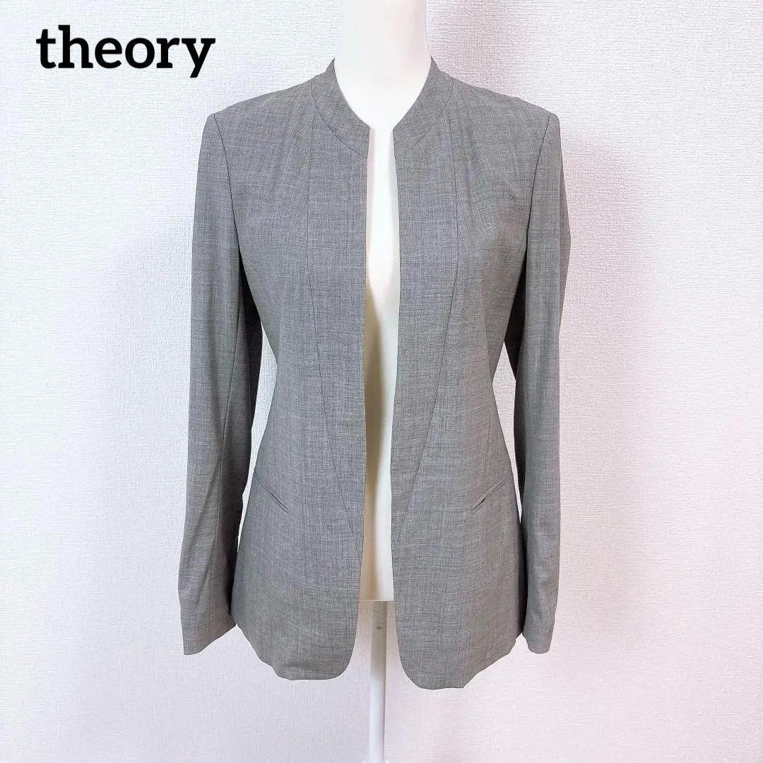 - theory セオリー ノーカラーテーラードジャケット グレー 2