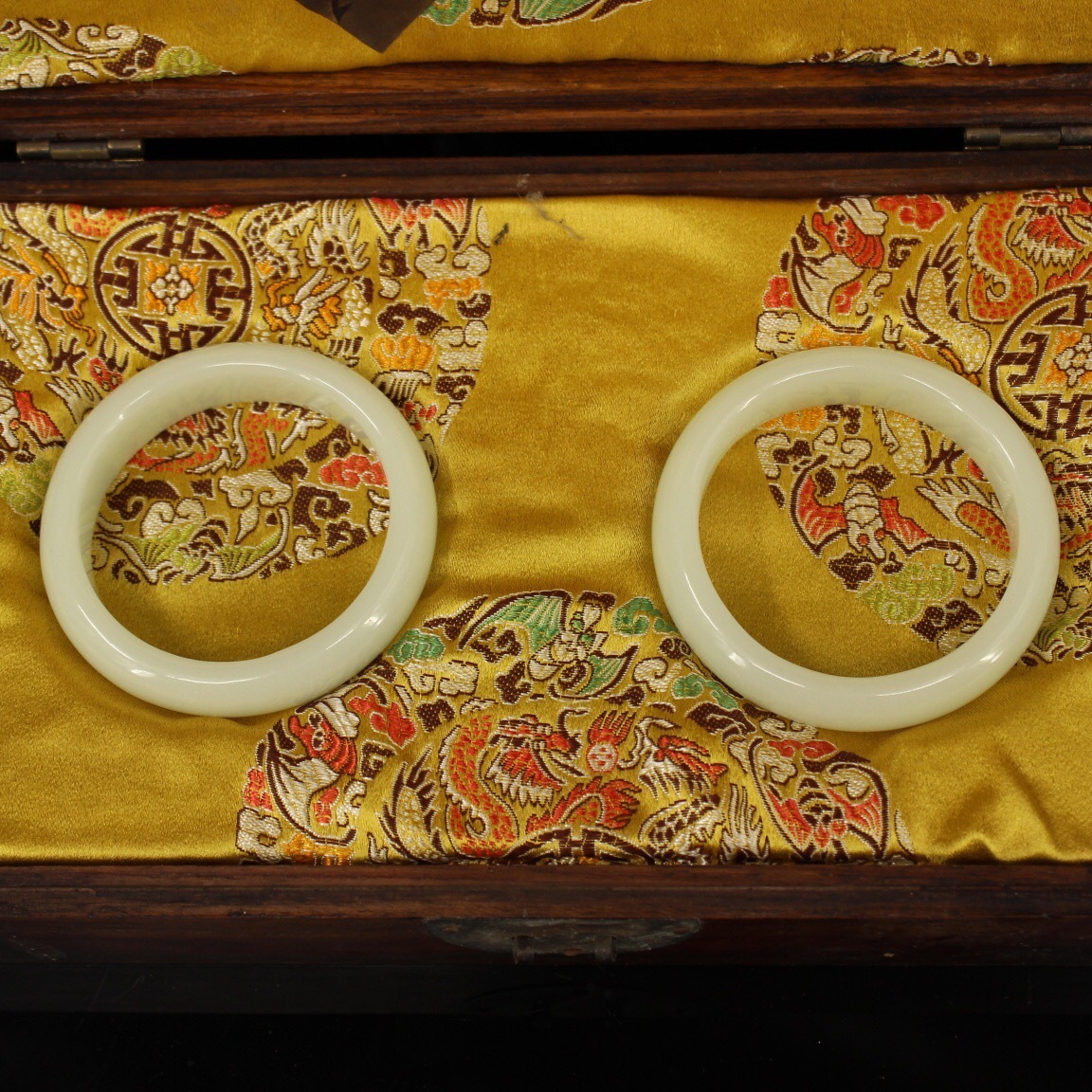 - 『館蔵珍品 夜光石細密彫 腕輪一對 箱付 根付 裝身具』稀少珍蔵品 古賞物 貴重物品 収蔵品 中国古美術 時代物 古董品