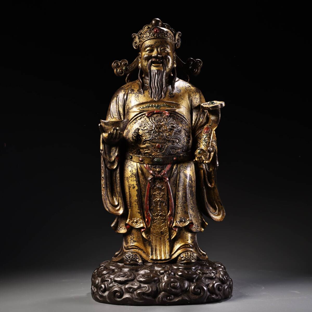 - 仏像 清代 旧蔵 純銅全銅高レリーフ刻泥金財神仏像1体 チベット古寺 銅製 唐物 收蔵品 時代物 古美術 古置物 供養品 文房具 仏教6.26