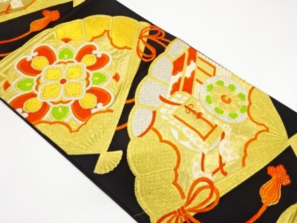> ys7426520; 宗sou 桧扇に華紋・御所車模様織り出し袋帯(着用可)【アンティーク】【着】