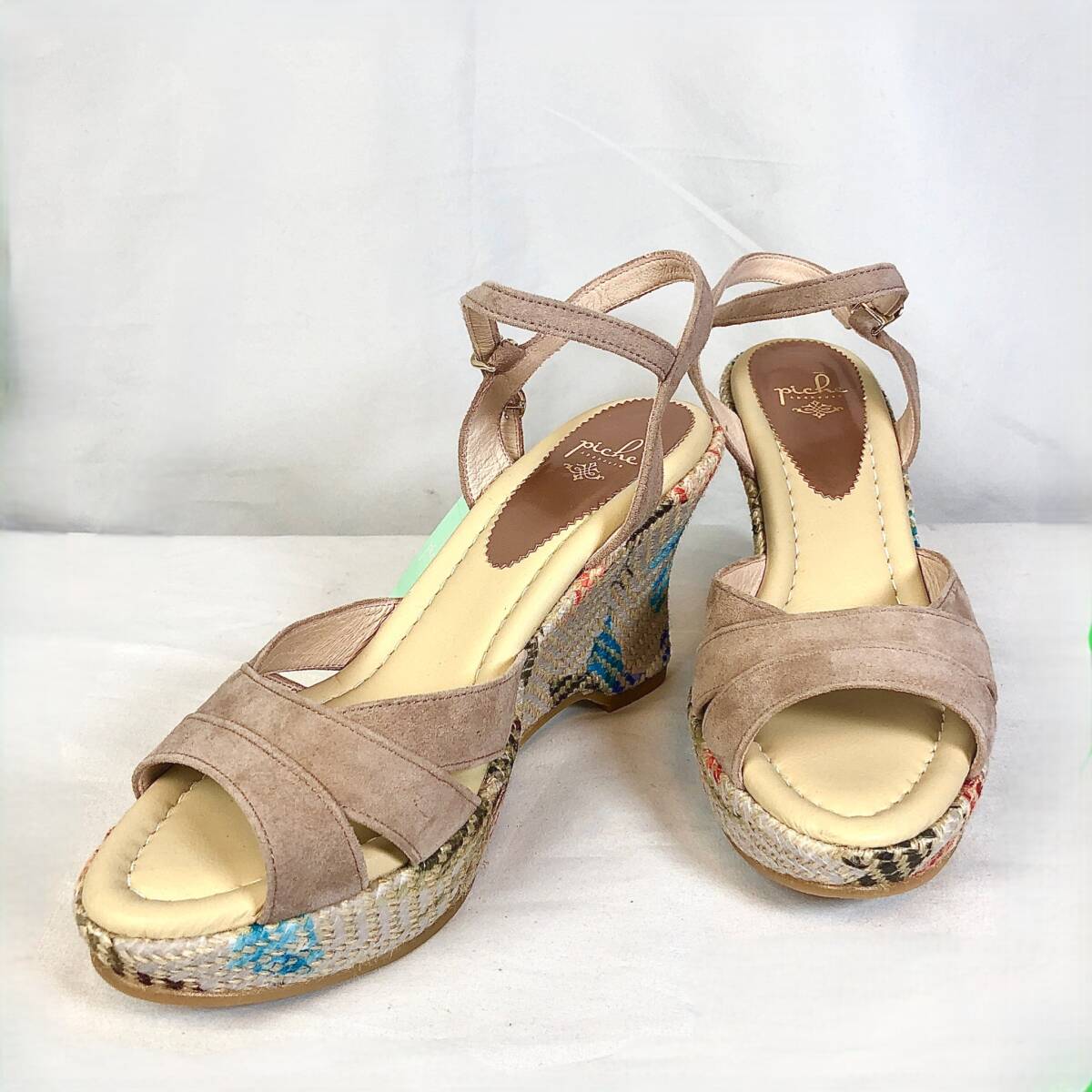 > 美品★PICHE ABAHOUSE★24.5㎝ サンダル ピシェ アバハウス ウエッジソール レザー アンクルストラップ ベージュ 日本製 レディース