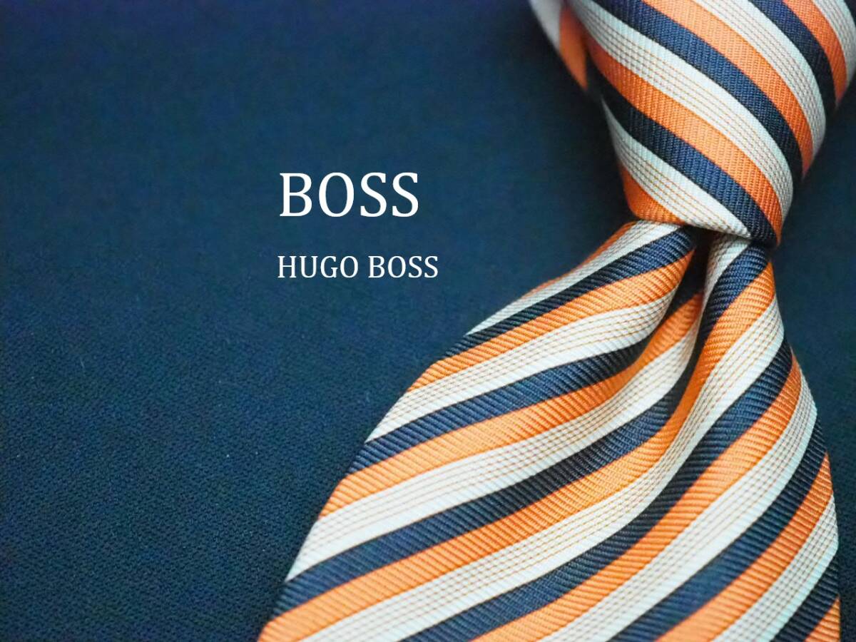- 美品【HUGO BOSS ヒューゴ ボス】 E2773 オレンジ系 SILK ブランド ネクタイ 古着 良品