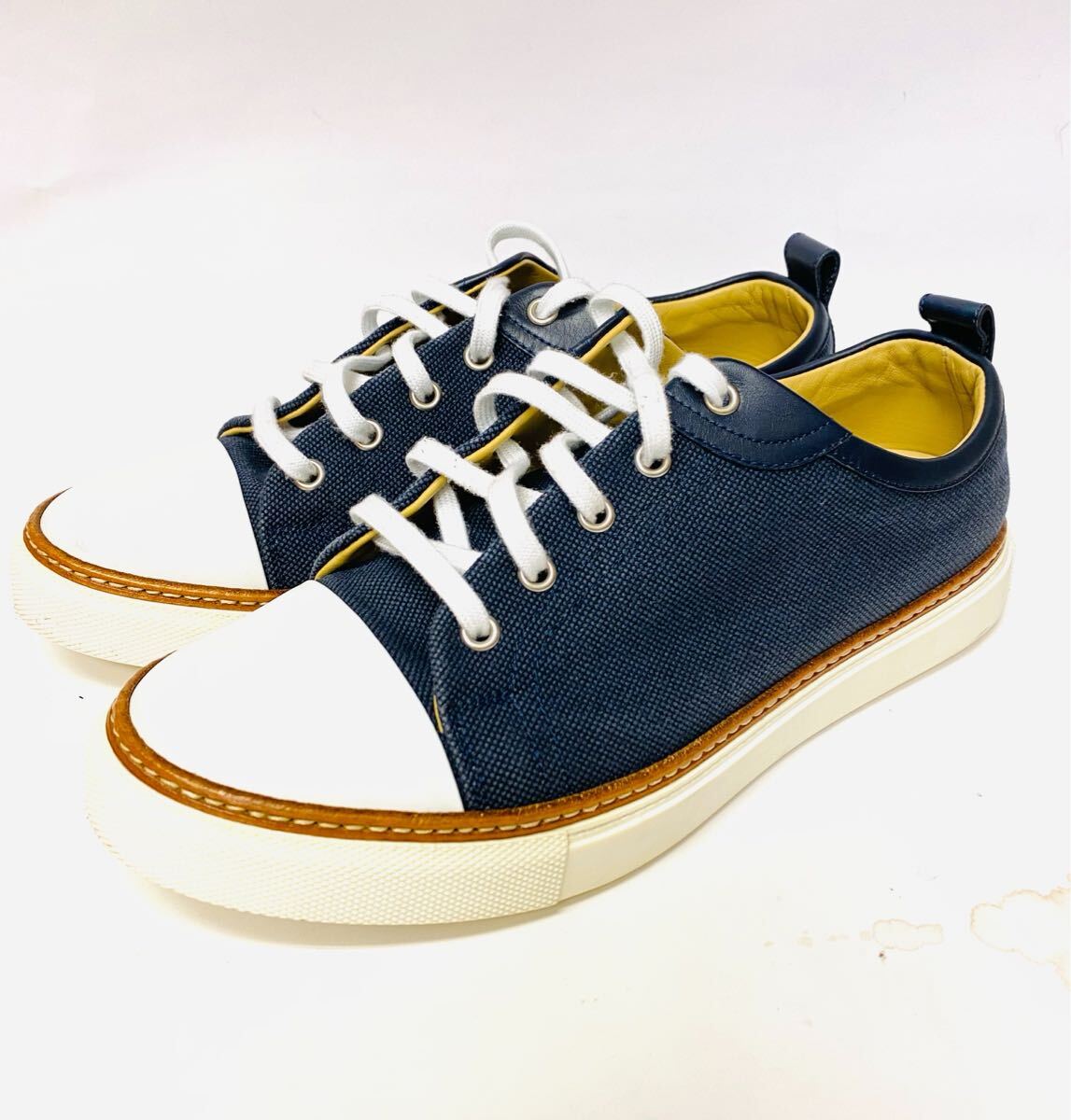 - 試着 定価15万 HERMES エルメス メンズ セリエボタン レザー ローカット スニーカー シューズ ネイビー 40.5 正規品 箱/カード