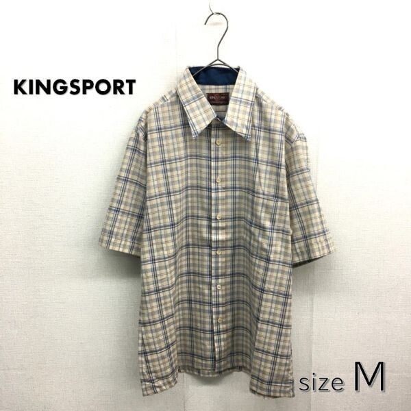 - HZ8984★KINGSPORT : 80's ヴィンテージ 半袖シャツ★M★ベージュ/ブルー チェック柄 キングスポーツ