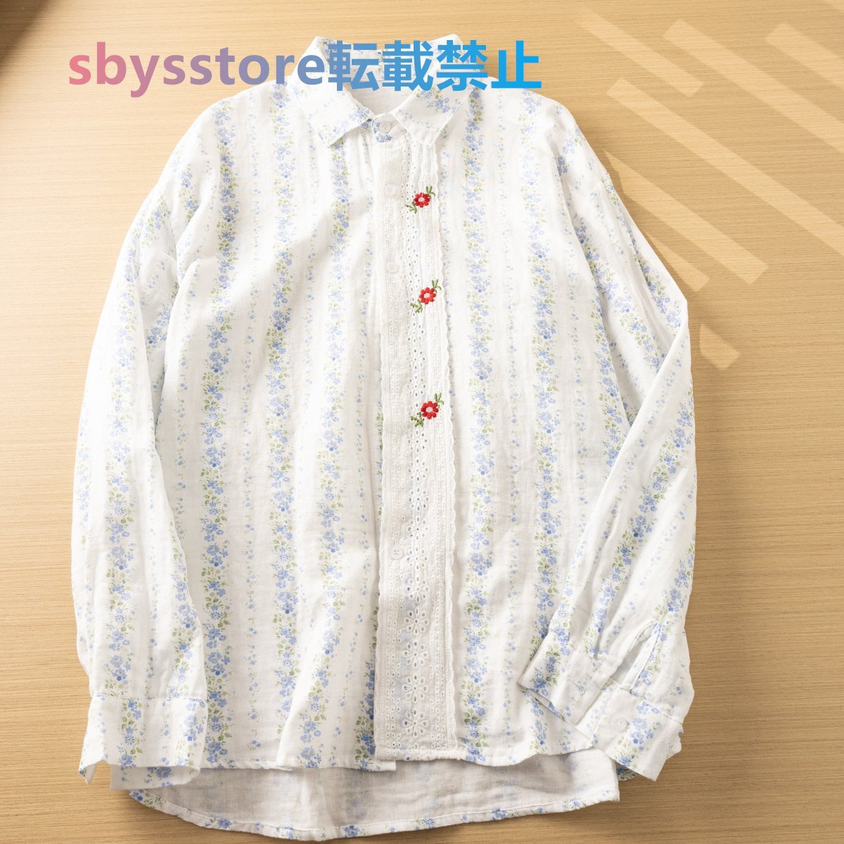 > ダブルガーゼ6 プリント柄 オシャレ ワイシャツ トップス チュニック 大人可愛 フリーサイズ ナチュラル 綿100% コットン
