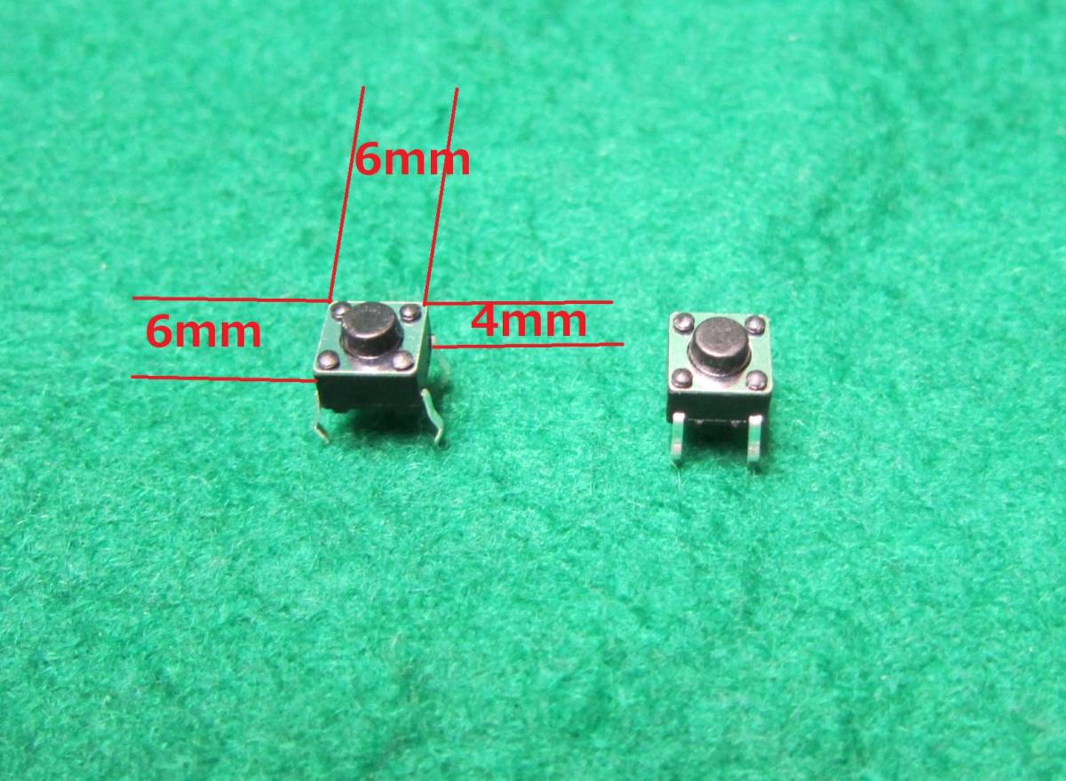 - 基板差込取り付け6mm×6mm厚さ4mmタクトSW押している間オン2個1組送料全国一律ゆうメール180円同サイズ面実装も有ります