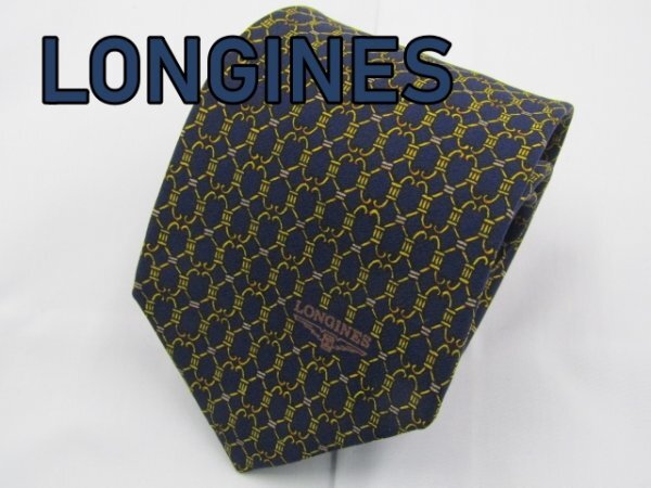 - 【腕時計 スイス】【ロンジン】 E 624 ロンジン LONGINES ネクタイ 紺系 チェーン ワンポイント ブランドロゴ プリント